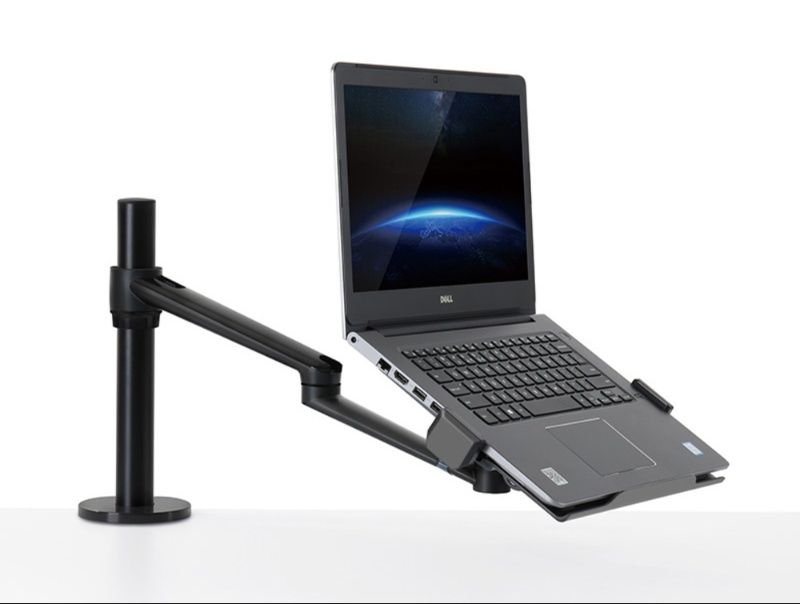 挟み込み式の固定具でデスクにしっかり取り付けでき、省空間で端末作業環境を向上させます。