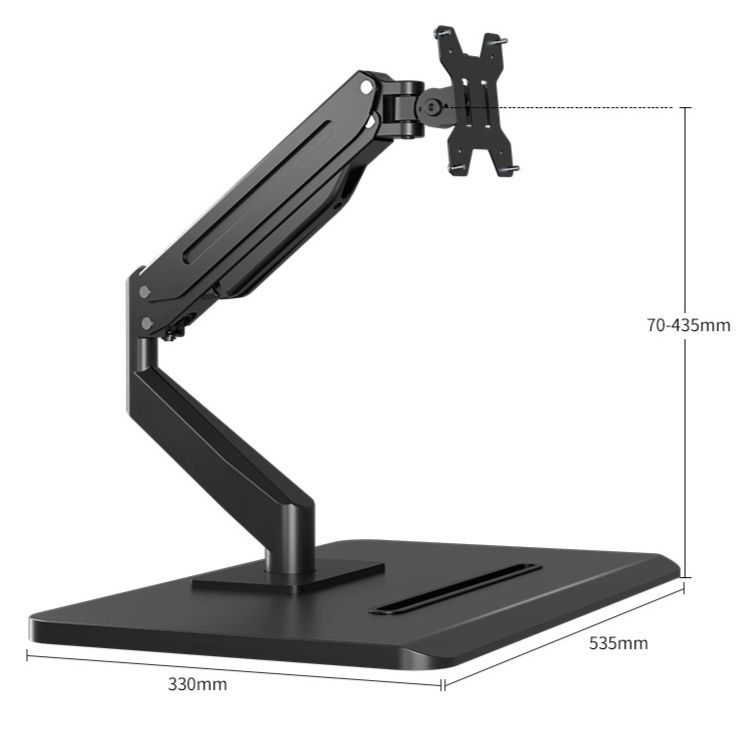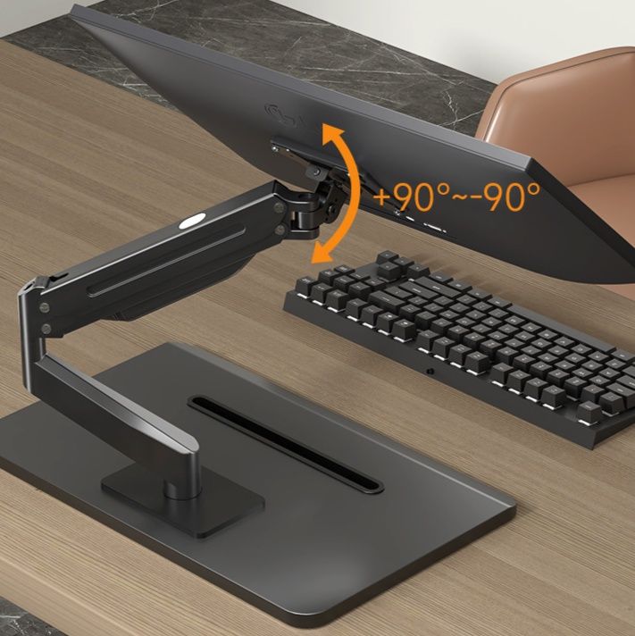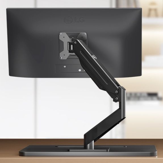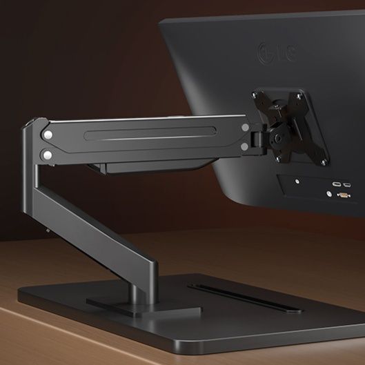 机の上に設置するだけで使える置き型のモニターアームです。 安定感のある幅広の台座設計で、机を傷つけることなく画面を支えます。 関節部分は多段階に調整可能で、画面の高さや角度を自由に変えられるため、最適な視線位置を実現できます。 台座には配線用のスリットが設けられており、配線もすっきりと整理できます。 在宅勤務や作業環境の改善に最適なモニターアームです。