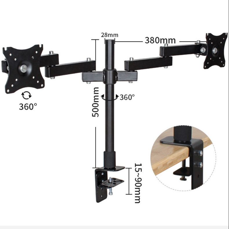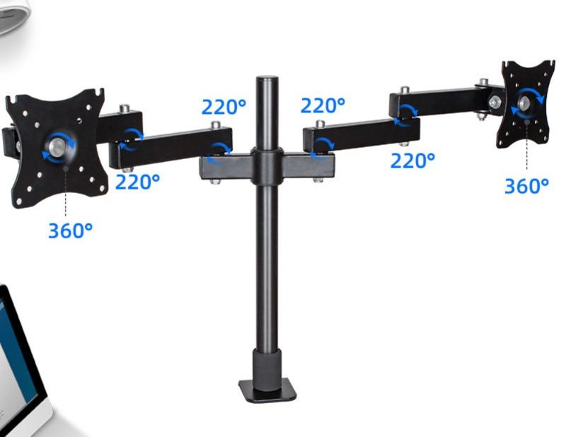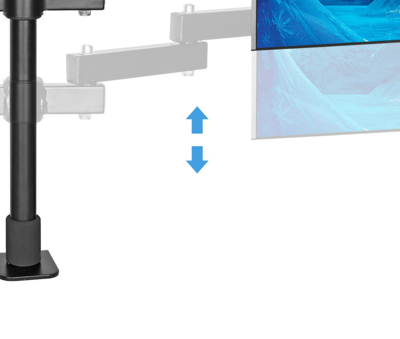 デスク上の空間を有効活用できるモニターアームです。2画面を縦横自在に配置でき、それぞれ360度回転と220度角度調整が可能な設計となっています。 安定感のある支柱式構造で、画面の高さや向きを細かく調整できるため、長時間の作業でも快適な視聴環境を実現します。 省スペースで作業効率を高めたい方に最適な逸品です。