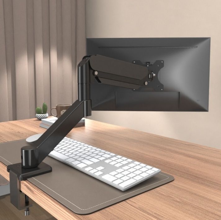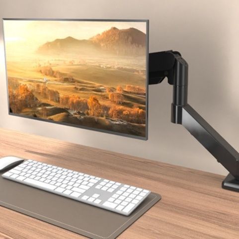 デスクに挟むだけで簡単に設置できる単体画面用のモニターアームです。