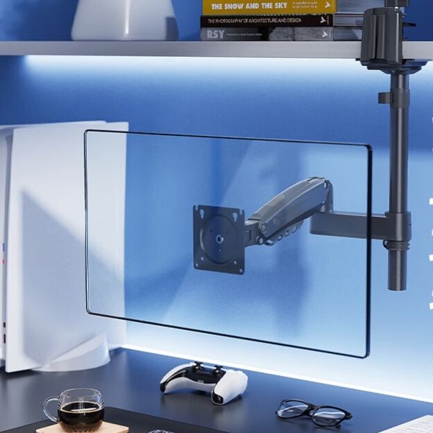 デスクを傷つけない穴あけ不要の設計が魅力のモニターアームです。
