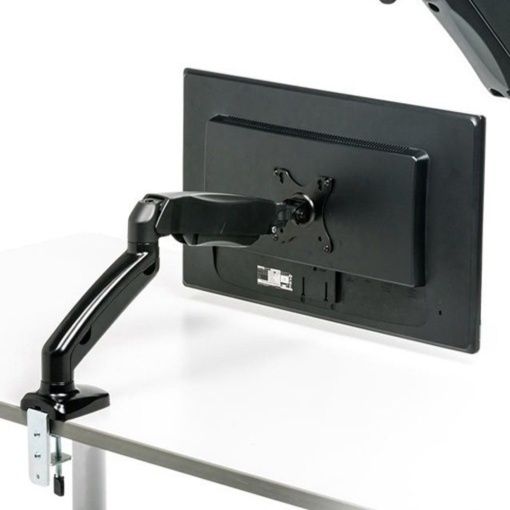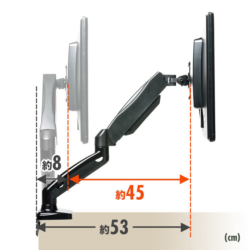 机上空間を有効活用しながら画面位置を最適化できるため、長時間作業でも疲れにくく姿勢改善にも貢献します。