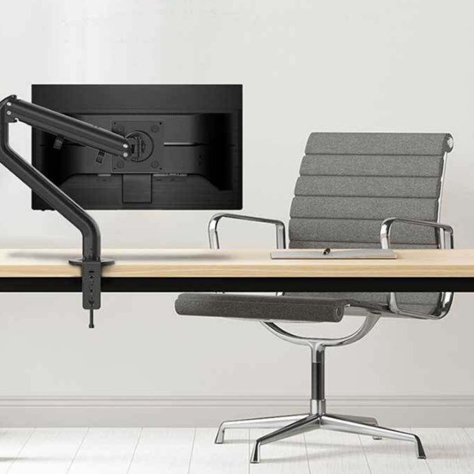 滑らかな曲線を描くアーム部分が美しい置き型のモニターアームです。
